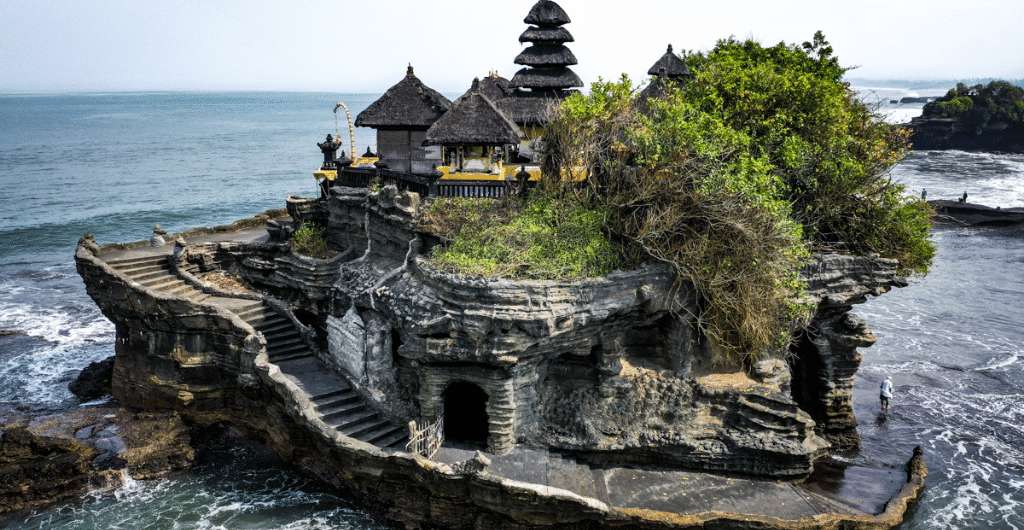 Tanah Lot Temple is one of the most sacred temples in Bali, Indonesia. Here there are two temples located on a large rock. One is located on a boulder and the other is located on a cliff similar to Uluwatu Temple. Tanah Lot Temple is part of the Dang Kahyangan temple.